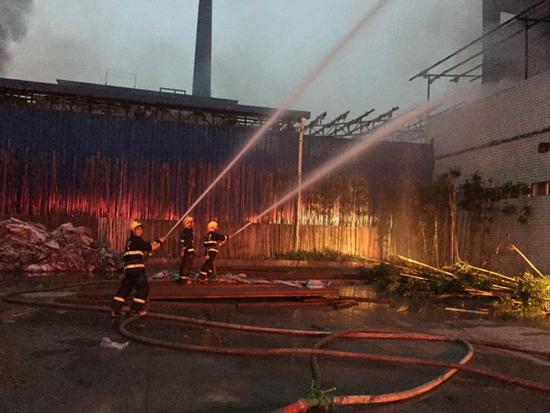消防官兵在起火點(diǎn)周圍分別架設(shè)水槍水炮以及高噴消防車對火勢進(jìn)行壓制。針對燃燒物質(zhì)為P2O4有機(jī)溶劑和裝硫酸鋅的特殊情況,現(xiàn)場指揮部對滅火作戰(zhàn)力量進(jìn)行重新分配,集中優(yōu)勢兵力、優(yōu)勢裝備,采用泡沫水槍對起火點(diǎn)進(jìn)行全方位覆蓋。大火于早上6點(diǎn)50左右被成功控制,由于鋼結(jié)構(gòu)建筑已完全坍塌,內(nèi)部仍存在部分余火,消防部門現(xiàn)場調(diào)來挖掘機(jī)對廠房進(jìn)行拆除,對挖出的可燃物質(zhì)及時進(jìn)行水槍覆蓋。